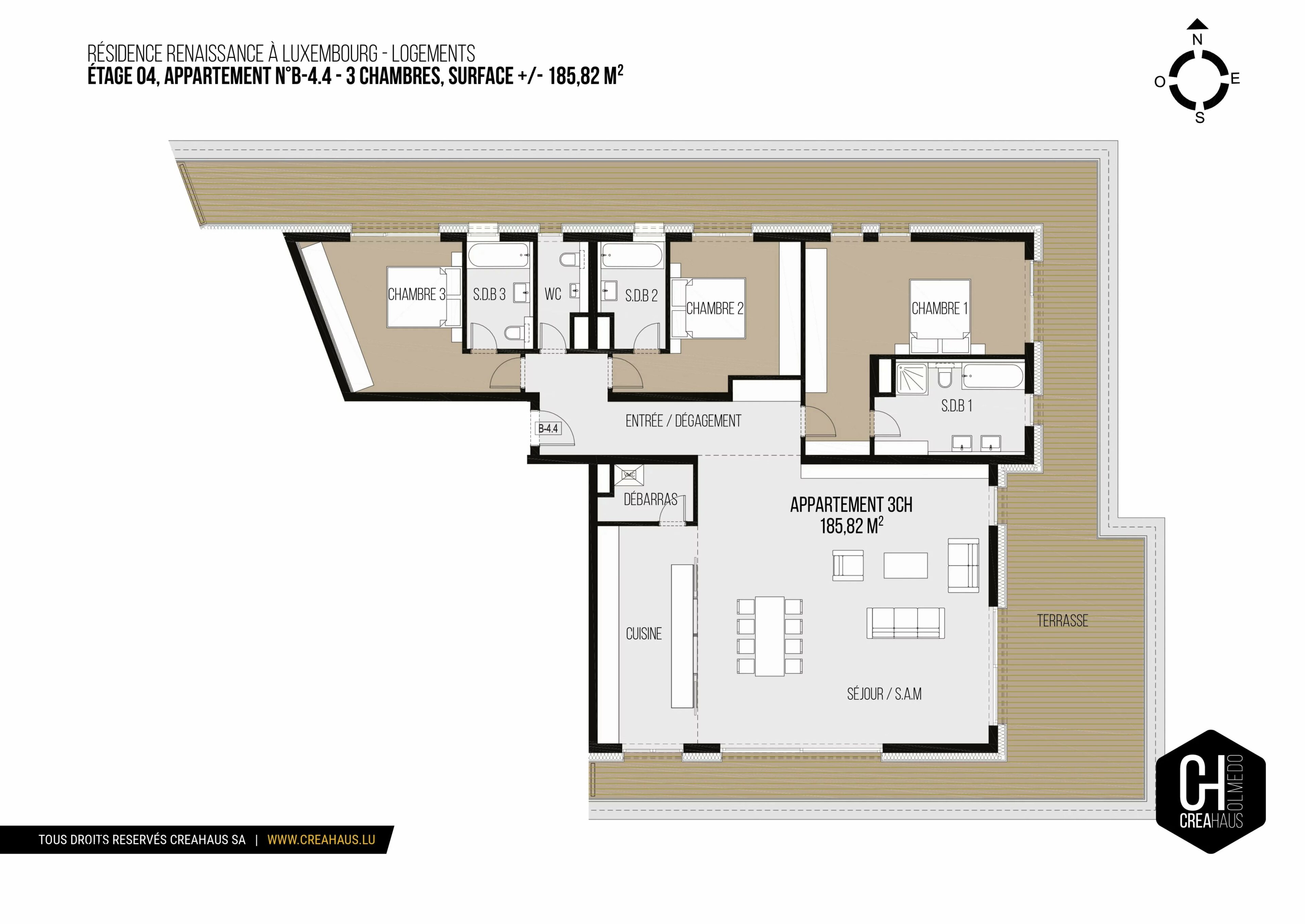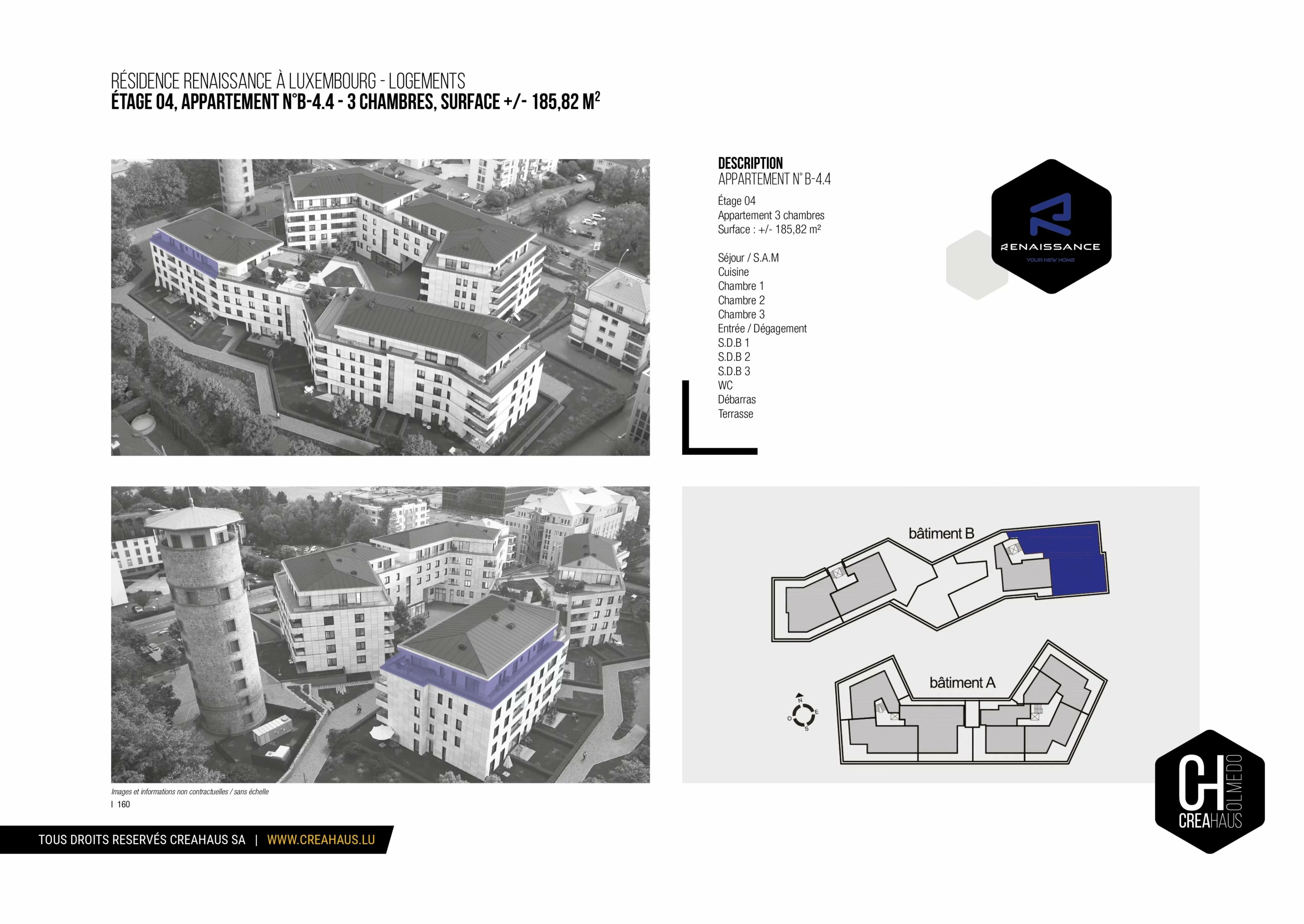 Creahaus has the privilege to present this sumptuous new high-end penthouse, approximately 186 m² in size, located on the 3rd and top floor of the prestigious Renaissance residence, on Arlon Road in the sought-after Belair neighborhood.
