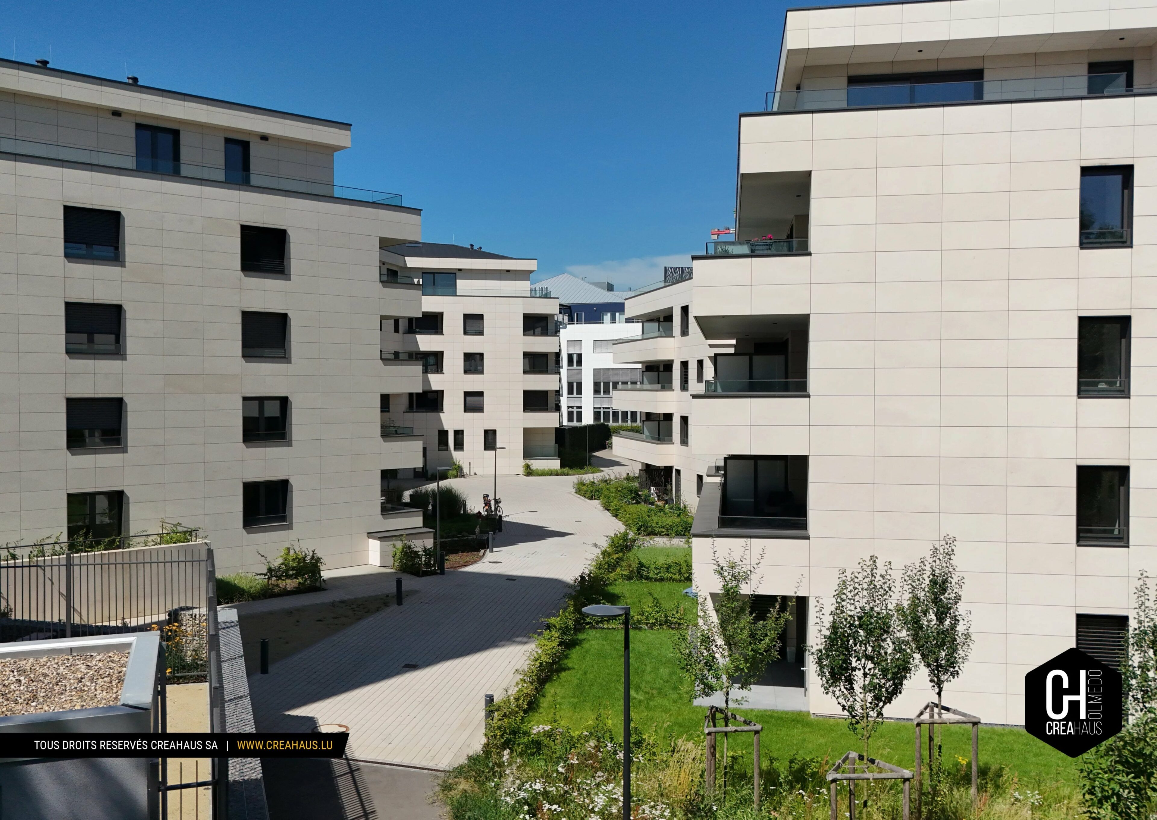 CREAHAUS is privileged to present this sumptuous new luxury apartment, with a surface area of approx. 90 m², located on the 2ᵉ floor of the very exclusive RENAISSANCE residence, along the Route d'Arlon in Strassen, in the heart of the sought-after Belair district.