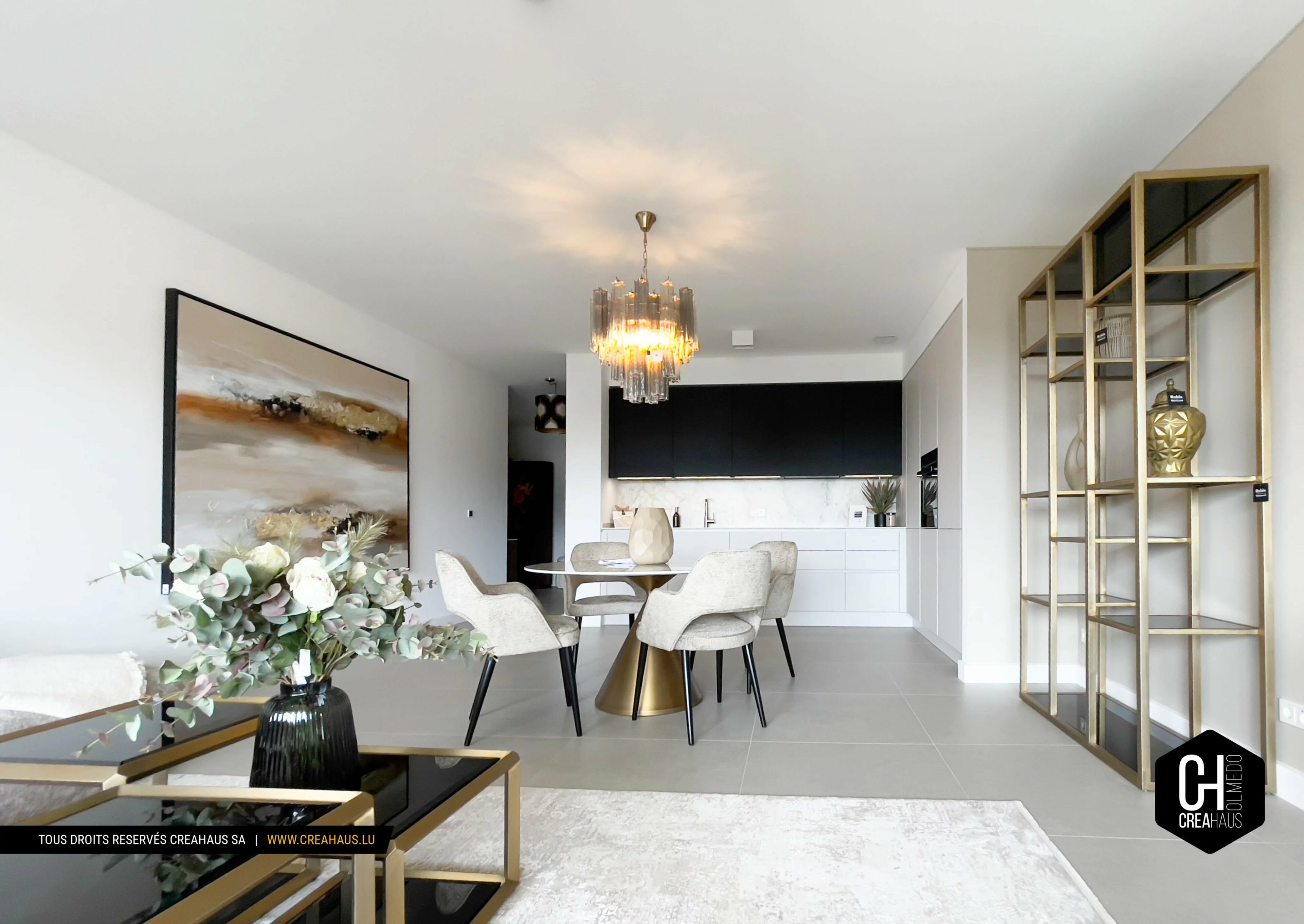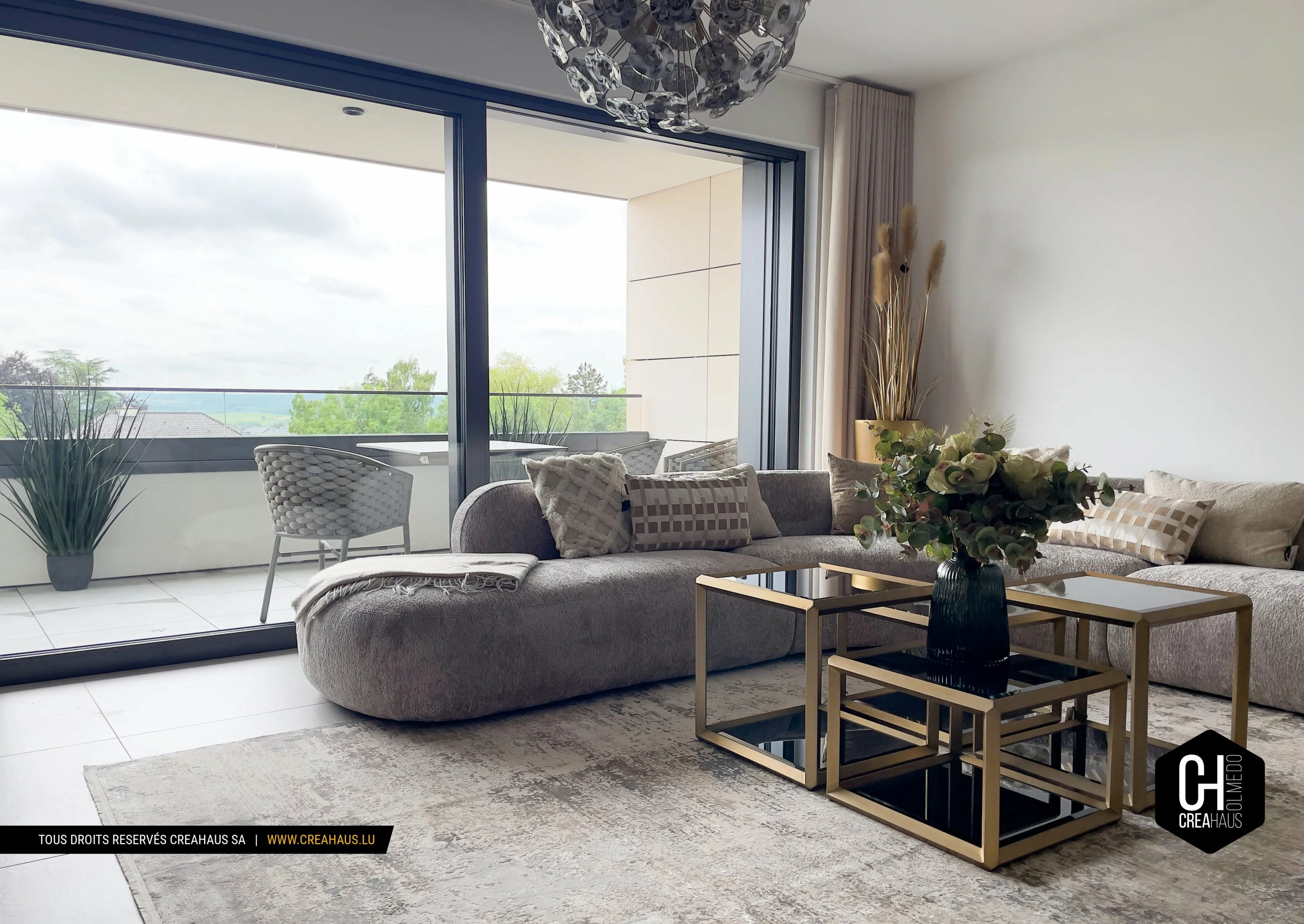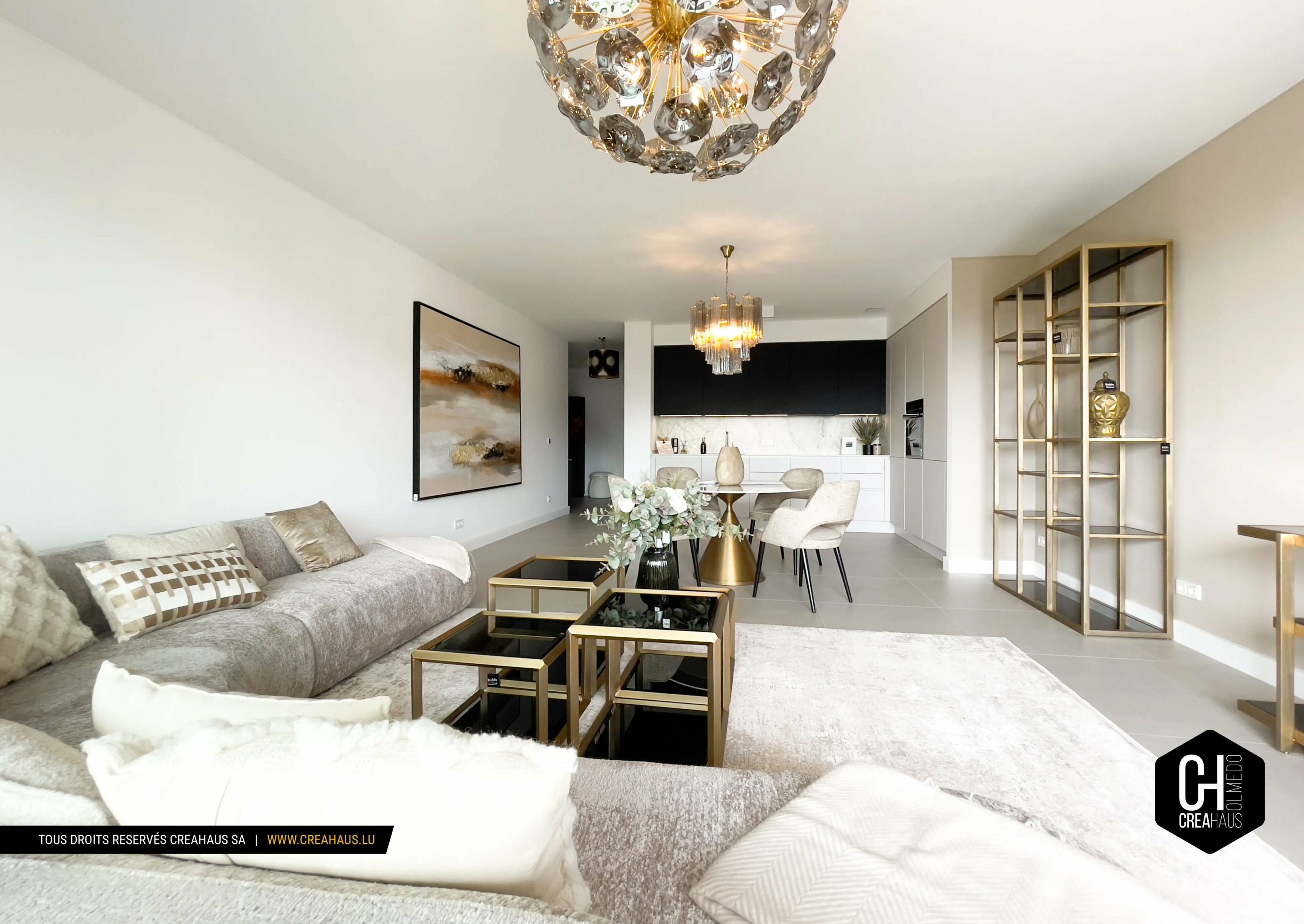 CREAHAUS is privileged to present this sumptuous, tastefully furnished new apartment of the highest standing, with a surface area of approx. 88 m², located on the 2ᵉ floor of the very exclusive RENAISSANCE residence, on Route d'Arlon in the sought-after Belair district.