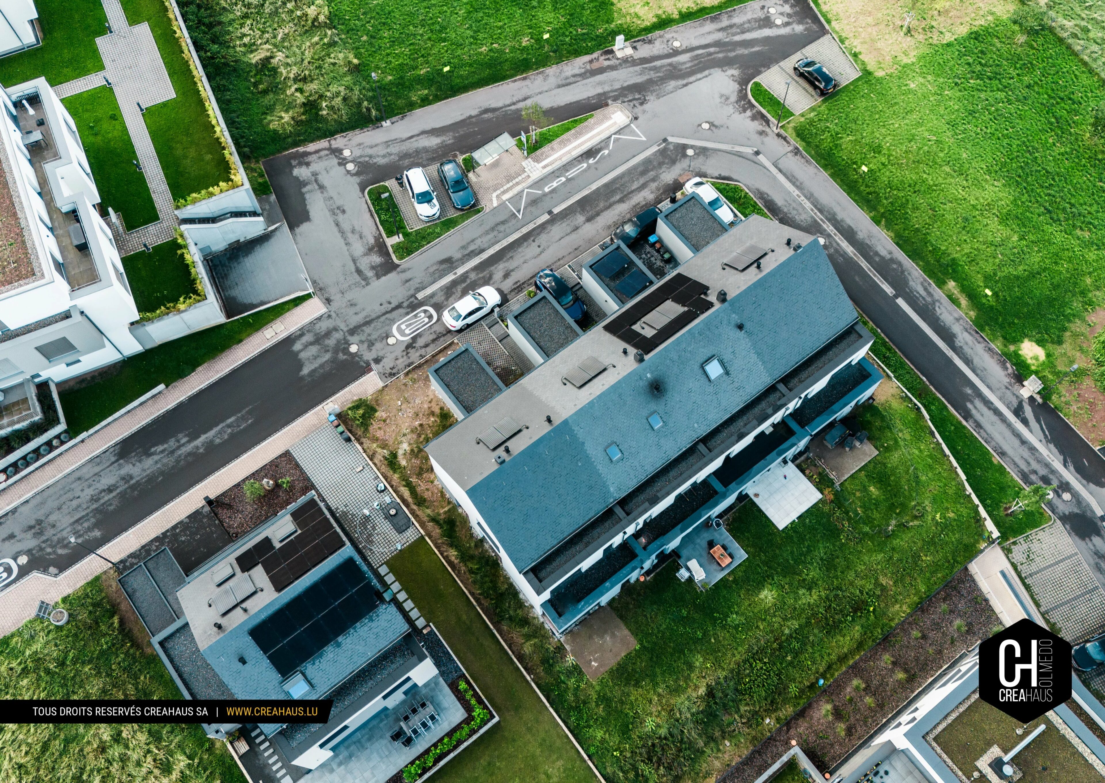 Located in the Auf Dem Moor residential development (Rue Michel Weber), this 3-front strip house features modern architecture, bright rooms and a functional layout.