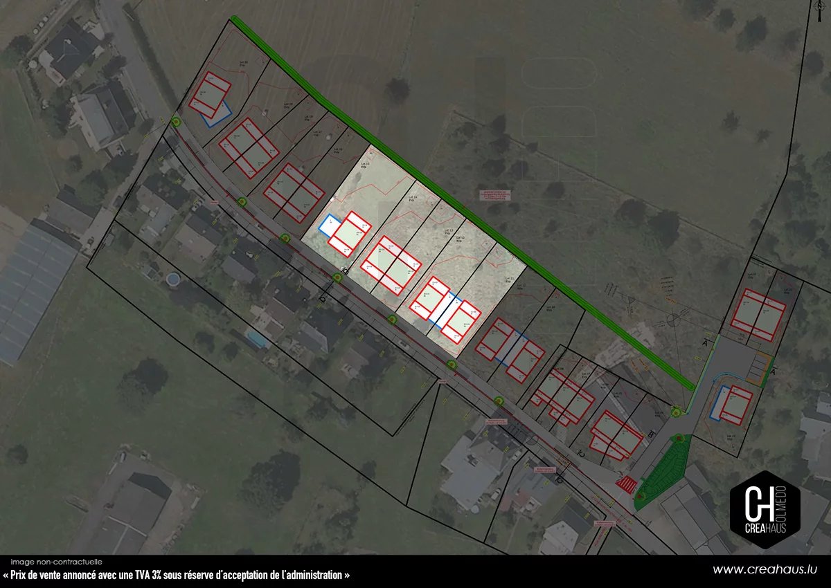 The project comprises several plots of land with building contracts, ranging in size from 5.4 to 6.7 ares, for the construction of semi-detached or garage-detached houses.