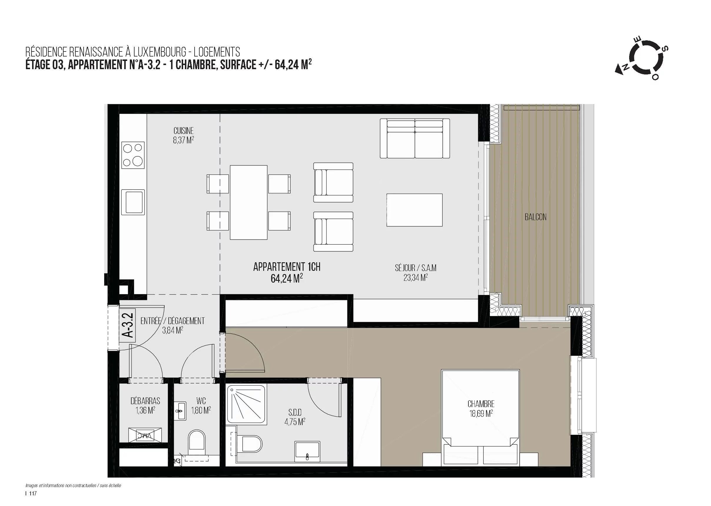 CREAHAUS offers you this beautiful luxury apartment of +/-64m2, ideally located on the 3rd floor of the prestigious RENAISSANCE residence built in 2023, on the Route d'Arlon in Luxembourg, in the sought-after Belair district.