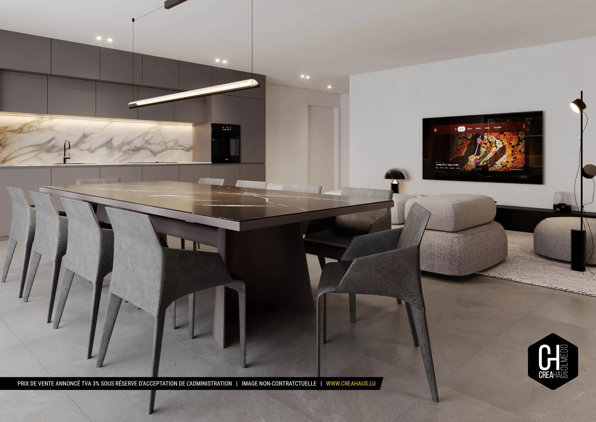 Discover SABLINE, an innovative new residential project on Rue des Prés in the heart of a peaceful neighborhood in Steinsel, just a short distance from Luxembourg City (10 km).This CREAHAUS project, developed in collaboration with Luxembourg architects NDM Architectura, is a remarkable contemporary ensemble comprising two residences with clean lines and a refined aesthetic.