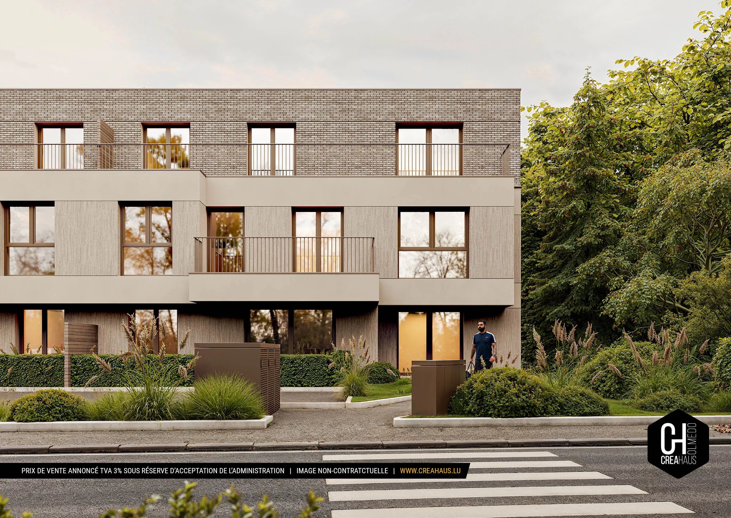 Discover SABLINE, an innovative new residential project on Rue des Prés in the heart of a peaceful neighborhood in Steinsel, just a short distance from Luxembourg City (10 km).This CREAHAUS project, developed in collaboration with Luxembourg architects NDM Architectura, is a remarkable contemporary ensemble comprising two residences with clean lines and a refined aesthetic.