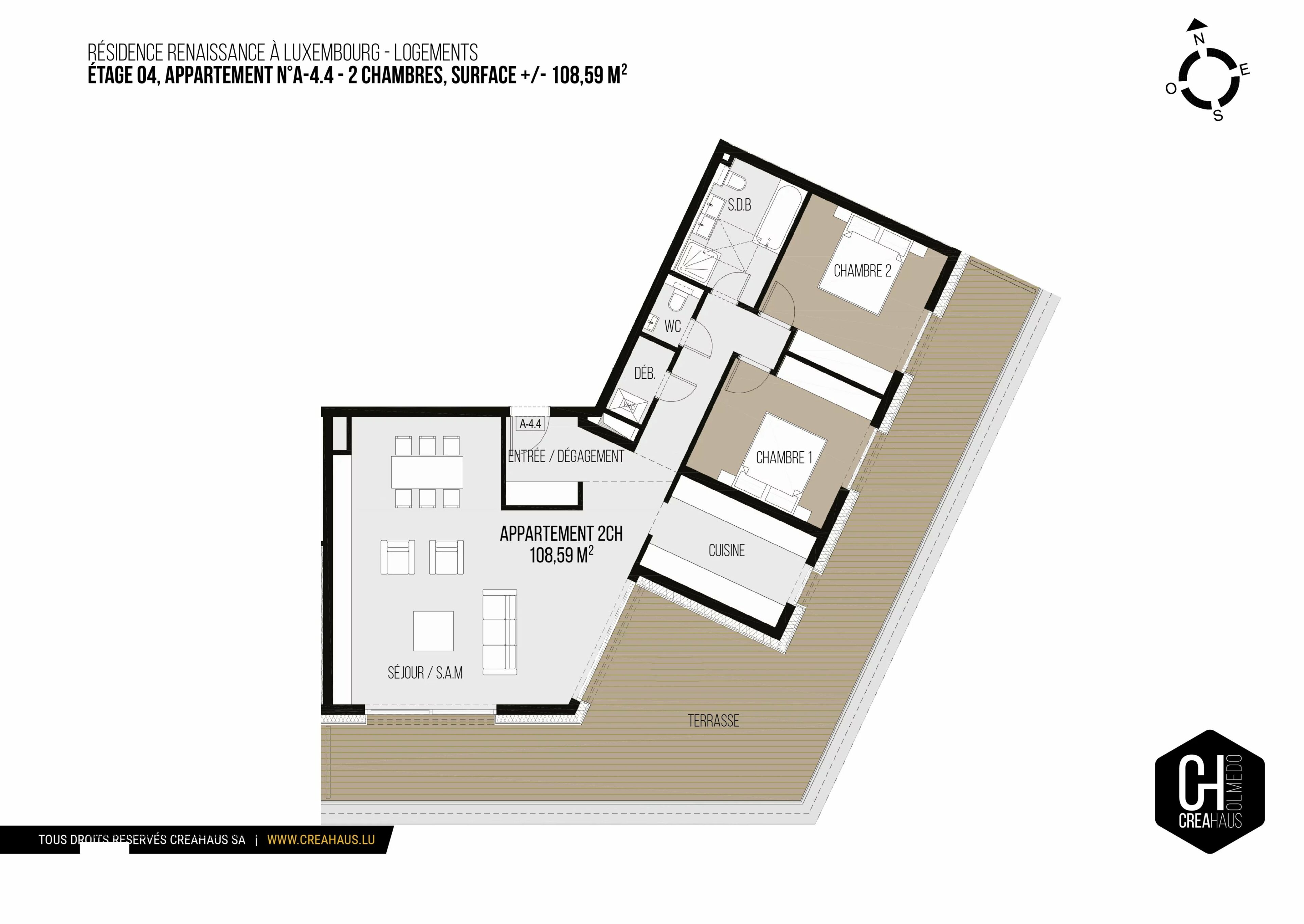 Creahaus a le privilège de vous présenter ce somptueux penthouse neuf de haut standing, d’une surface d’environ 109 m², situé au 4ème et dernier étage en retrait de la prestigieuse résidence Renaissance, sur la route d’Arlon dans le quartier recherché de Belair.