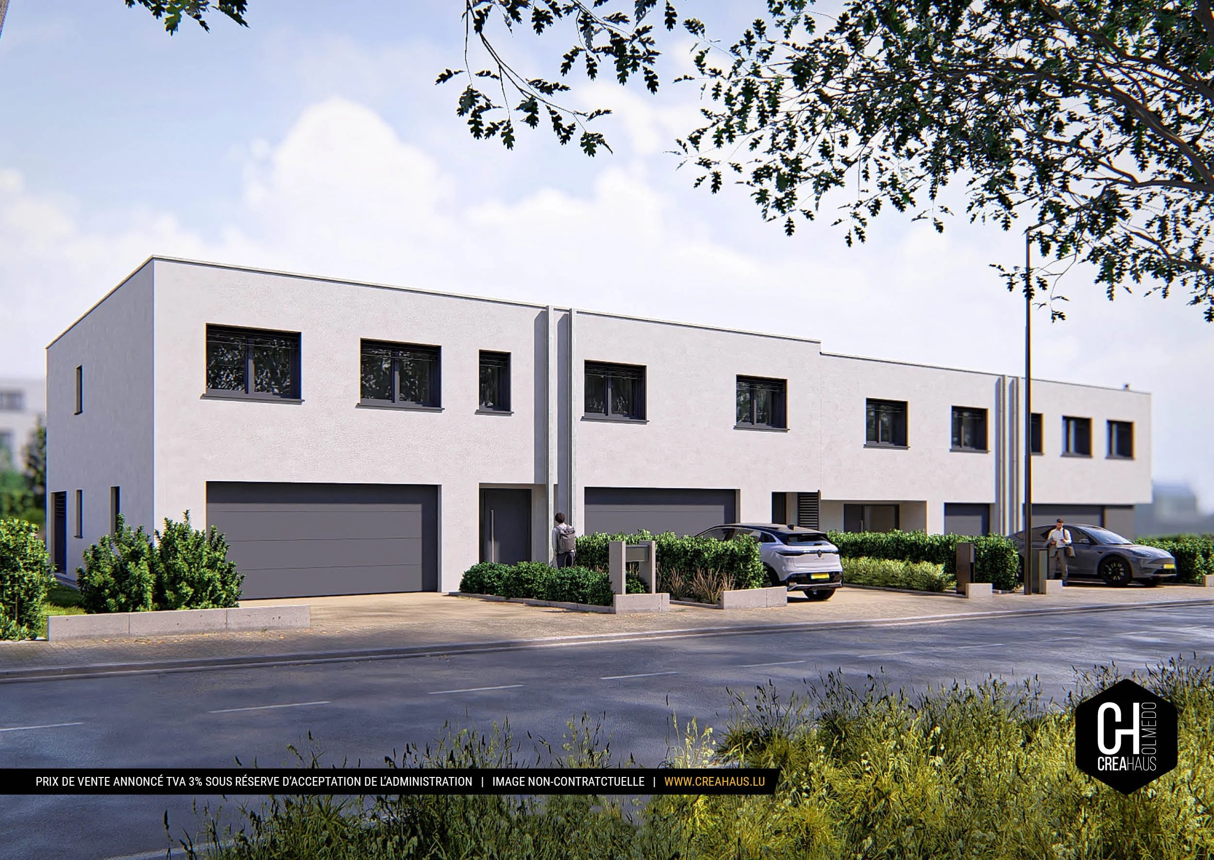 In der neuen Wohnsiedlung Kummerheicht in Mondercange gelegen, besticht dieses Reihenhaus, das auf beiden Seiten aneinander grenzt, durch sein modernes Design, seine hellen Räume und seine hochwertige Ausstattung.