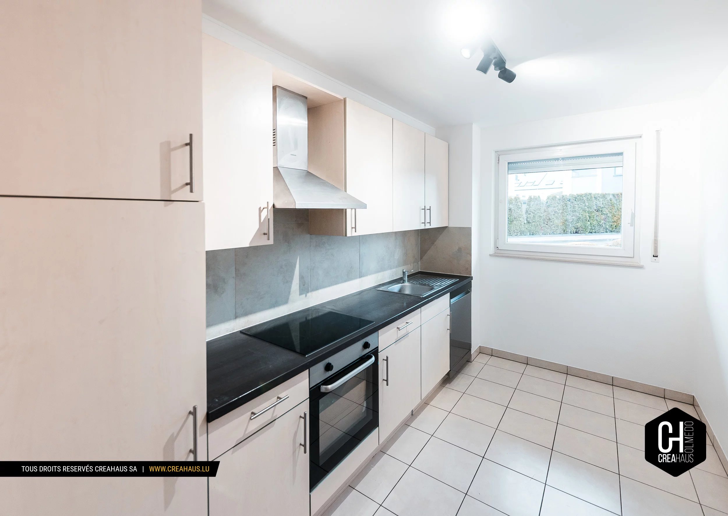 Wohnung 037Zur Miete, Creahaus bietet Ihnen diese charmante 2-Zimmer-Wohnung im Erdgeschoss der Residenz MIURA in Mamer im Herzen einer ruhigen Wohngegend in der Rue de Rome 20.